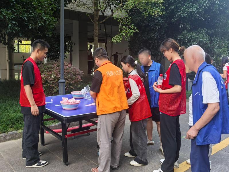 活动当日,志愿者于9时40分身着统一志愿服于商学院一楼集合,完成物资领取与职责分工后,自行前往丽水市残疾人托养中心,9时55分准时抵达并完成“志愿汇”签到。活动伊始,商青志负责人向志愿者系统讲解当日活动流程与看护规范,重点强调“1V1陪伴”原则,确保每位托养中心成员都能得到细致照料。运动会期间,志愿者与托养中心成员结对参与“趣味套圈”“慢走接力”“趣味拼图”等低强度、高安全性项目。活动间隙,志愿者与托养中心成员谈心交流,倾听需求与想法,强化情感联结。运动会结束后,志愿者协助整理场地,与托养中心成员合影留念。返程后,志愿者有序归还物资。宣传组于当日晚间启动活动照片与文字素材的整理工作,为后续宣传奠定基础。