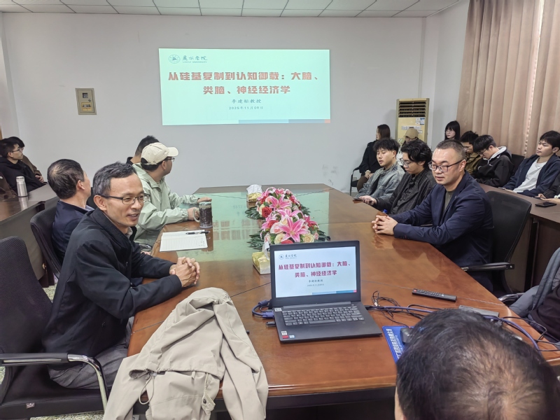 11月9日上午,李建标教授以“从硅基复制到认知卸载:大脑、类脑、神经经济学”为题,深入阐释人工智能与神经科学如何重塑人类决策模式并推动经济学理论革新。他指出,神经经济学正成为衔接传统脑经济学与神经形态经济学的重要桥梁,预示人机互动新时代的到来。互动环节中,师生就类脑经济学的实际应用踊跃提问,现场交流气氛热烈。