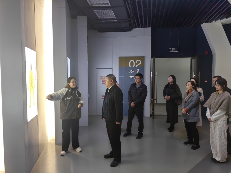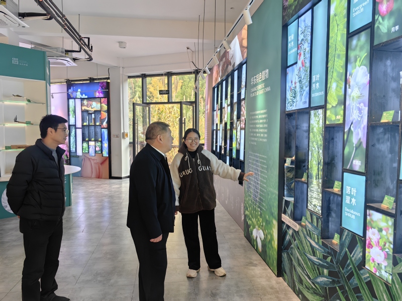 叶华松一行赴华东药用植物园,参观了云山境康养度假区、中医药文化展览馆和制药展示馆,看望了我校旅游管理专业实习生,并现场听取学生对植物园康养旅游资源、中医药文化展示及研学产品设计等内容的讲解。