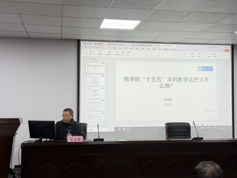 为深入贯彻落实学校教育教学改革部署,主动应对数智化时代对商科教育带来的机遇与挑战,商学院于12月24日下午在5103会议室成功召开2025-2026学年第1学期教学工作会议。会议以“聚焦数智赋能,实现创新突破与质量跃升”为主题,学院全体领导班子成员及教师齐聚一堂,共同研讨数智化背景下各专业教学改革的路径与策略,为学院高质量发展凝聚共识、明确方向。
