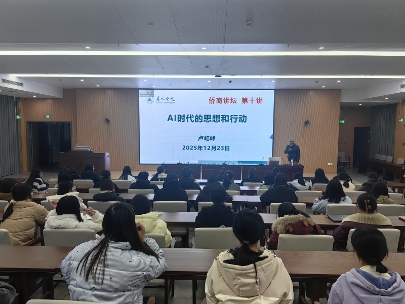 12月23日,商学院“侨商论道”讲坛第十讲邀请深耕AI领域的创业者卢屹峰作“AI时代的思想和行动”主题分享。