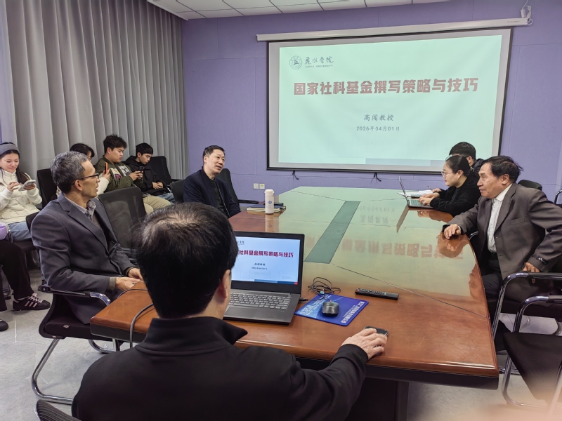 2026年4月1日,商学院在崇学楼709举办“国家社科基金撰写策略与技巧”专题学术讲座,特邀高闯教授主讲,相关专业师生及科研骨干参会。