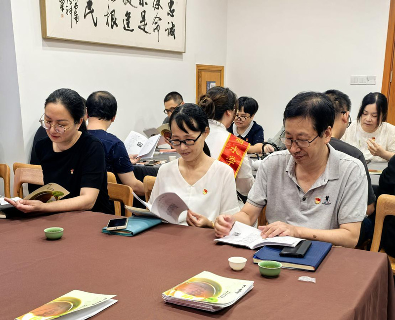 2024 年 9 月 19 日,为深入学习贯彻党的二十届三中全会精神、全国教育大会精神和浙江省十五届五次全会精神,推进党纪学习教育常态化,以优良的师德师风凝练发展正能量,商学院财务管理系旅游管理系行政教师联合党支部与图书与信息服务中心直属党支部于图书馆四楼联合举办“书香明廉 茶润人心”读书会暨主题党日活动。